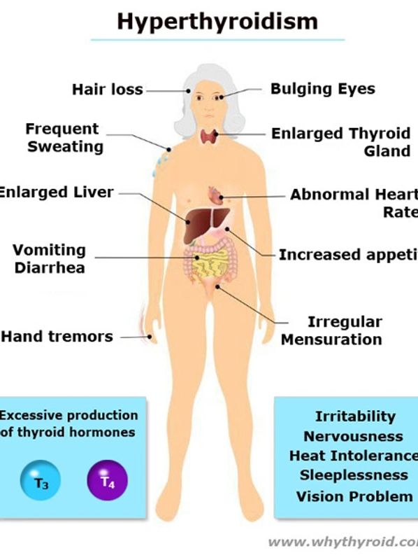 Hyperthyroidism is the condition that occurs due to excessive production of thyroid hormones by the thyroid gland. Thyrotoxicosis is the condition that occurs due to excessive thyroid hormone of any cause and therefore includes hyperthyroidism. Some, however, use the terms interchangeably. Signs and symptoms vary between people and may include irritability, muscle weakness, sleeping problems, a fast heartbeat, heat intolerance, diarrhea, enlargement of the thyroid, hand tremor, and weight loss. Symptoms are typically less severe in the elderly and during pregnancy. An uncommon complication is thyroid storm in which an event such as an infection results in worsening symptoms such as confusion and a high temperature and often results in death. The opposite is hypothyroidism, when the thyroid gland does not make enough thyroid hormone